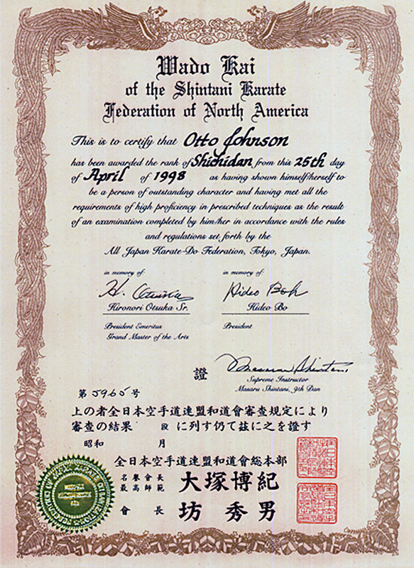 Shihan Otto Johnson Promoted to 9th Dan In American Wado Ryu