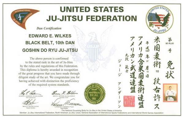 Certificate of Jujitsu Rank 8