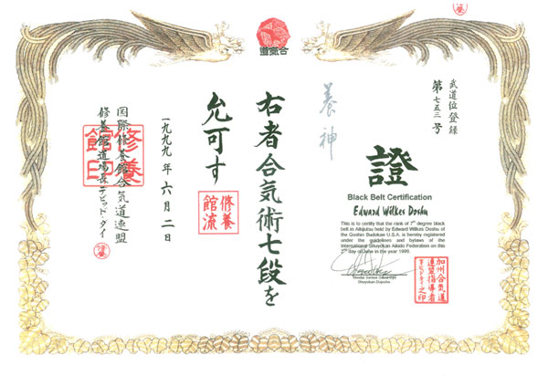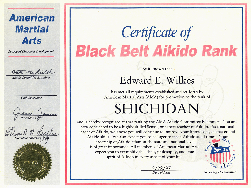 Black Belt Aikido Rank Certificate, Feb 28, 1997