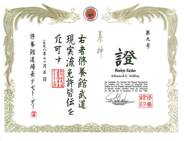 Certificate, Menkyo Kaiden, Dec 5, 1998