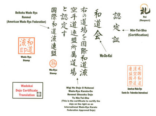 Explanation of Kanji on Wadokai Certificate from Soke Otto Johnson, Dec 11, 2002