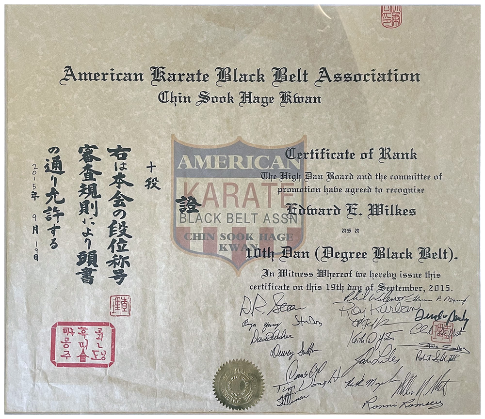 Certificate of Rank Karate 10