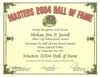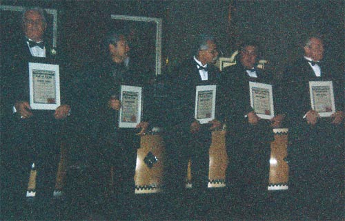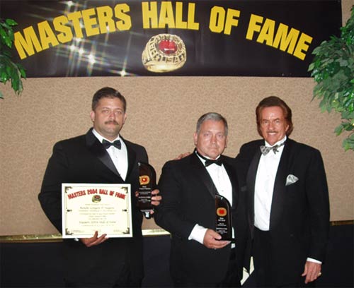 While Master Steve Spry was inducting others into the Masters 2004 Hall of Fame, Master Spry was himself inducted into the World Master 2004 Hall of Fame. From left to right: Master Spry (Missing names will be provided later)
