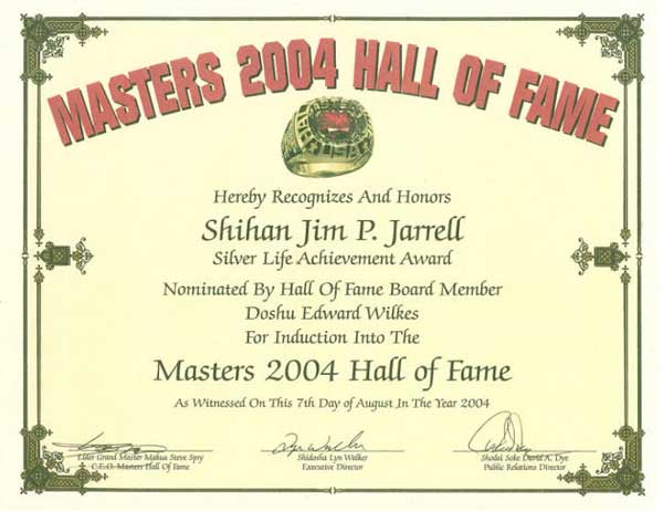 Shihan Jim P. Jarrell - Silver Life Achievement Award and Induction into the Masters 2004 Hall of Fame